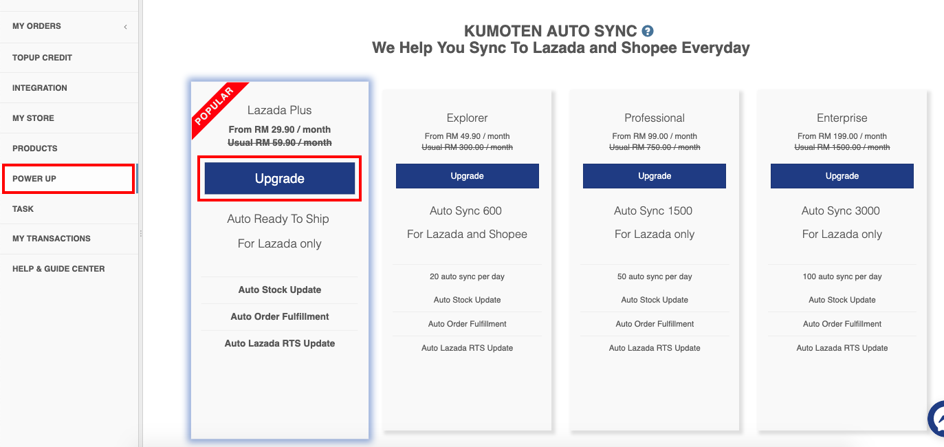 Step 2 : Click 'Upgrade' button which under Lazada Plus subscription plan